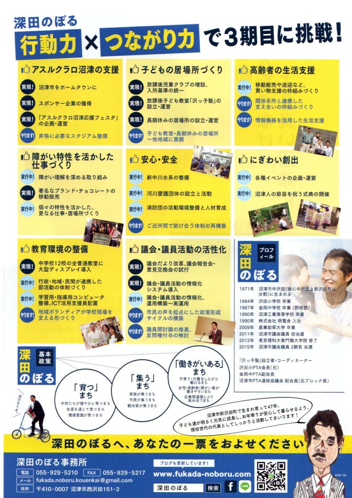選挙公報と比べて紙面に余裕がある分、より詳細な活動内容と私の想いについて記載しました。
