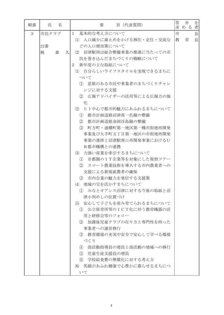 明後日2月28日(水)より、沼津市議会の各会派による代表質問があります。それぞれの会派が取り上げる内容は、沼津市議会WEBサイトより、ご覧いただけます。