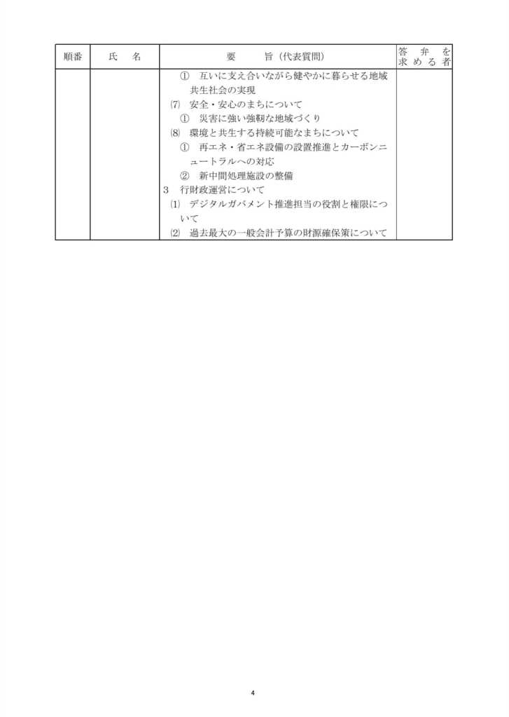 私の所属する会派 市民クラブの質問内容は写真の通りで、2/28(水)午後一番(13時台のどこかになると思われます)より始まる予定です。