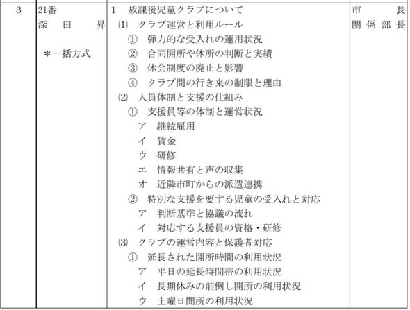 12/1(月)の議会本会議で「放課後児童クラブ」と「老人クラブ等」について取り上げます。私の質問は11時〜11時半くらいに始まる見込みです。