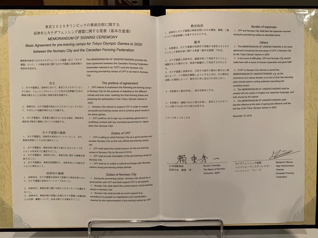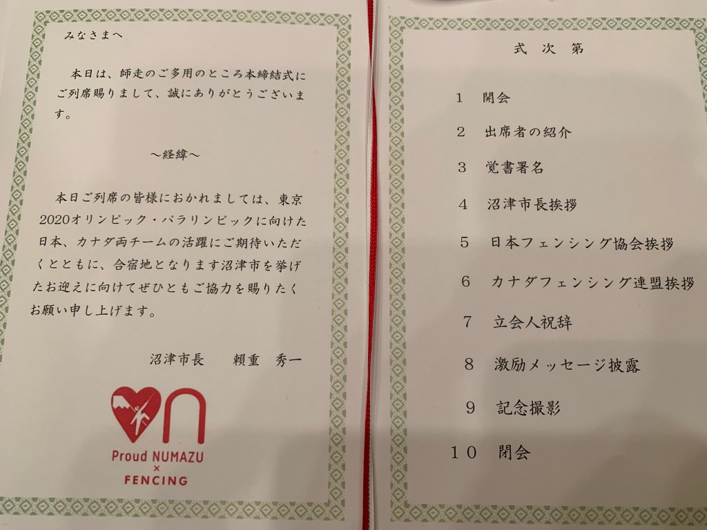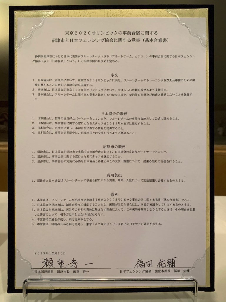 東京2020オリンピック、フェンシング競技の事前合宿受け入れに関する覚書の締結式に参加しました。