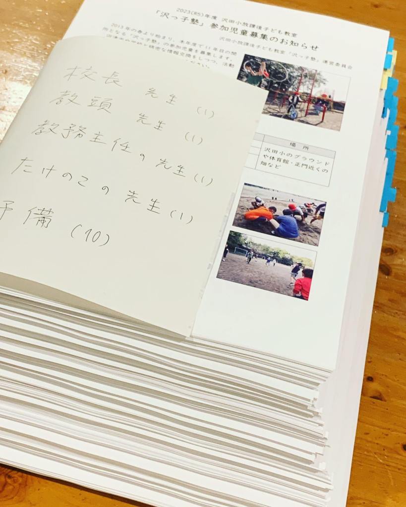 参加申込をしてくれた家庭に学校経由で資料を配布。今年度もたくさんの子どもたちに参加してもらえて、とても嬉しいです。