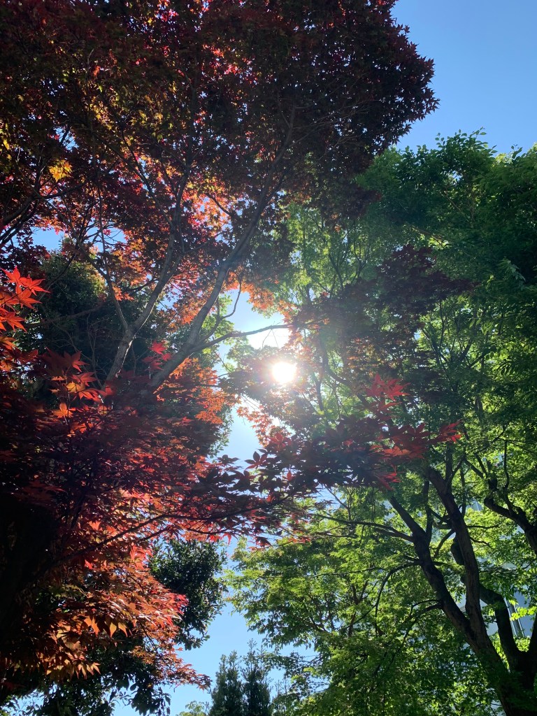 学校の中庭では朝日に癒されました。初日の5/8(月)に向けて準備を進めています。