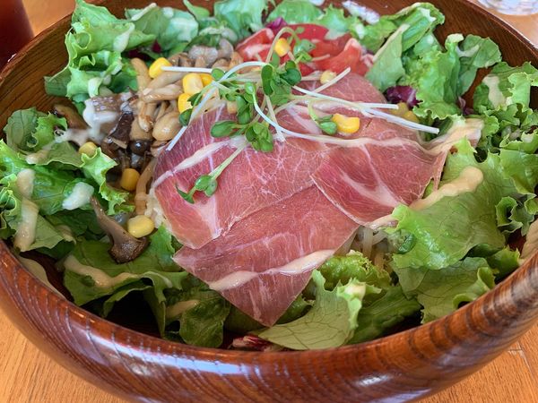 ぬまづ昔ばなしの関係でお世話になった学校のグラウンドでの草取りボランティアからの議会打ち合わせ。ランチのサラダパスタ、とても美味しいです。