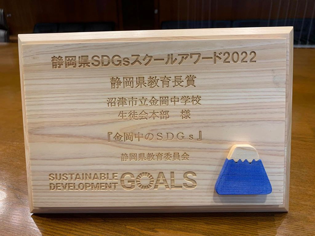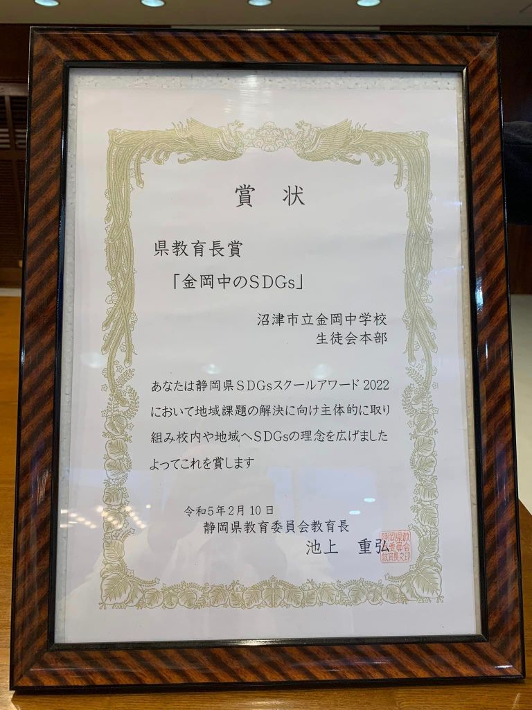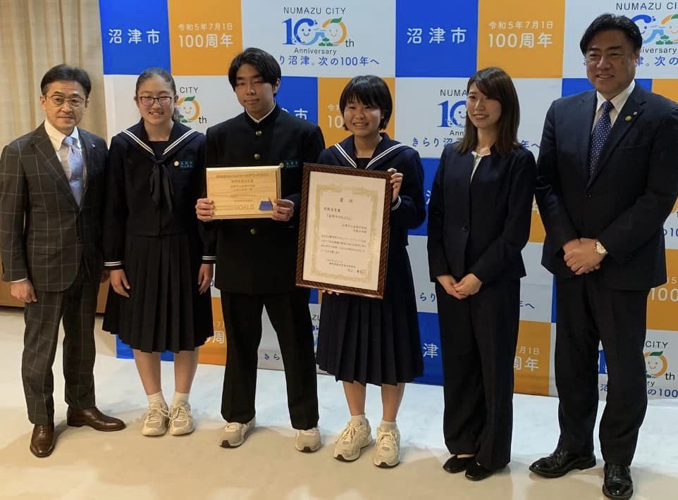 「静岡県SDGsスクールアワード2022」で県教育長賞を受賞した金岡中の生徒たちによる、市長・教育長の表敬訪問に同行。