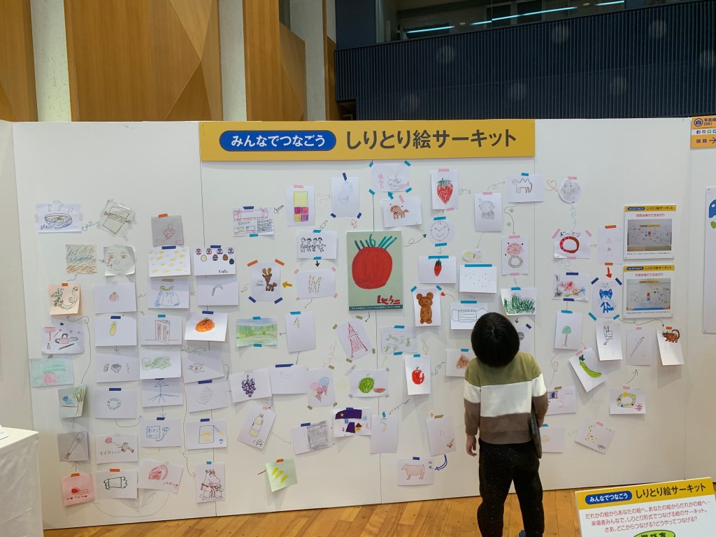 しりとり形式で絵を描いて来場者みんなでつなげる参加型イベント「しりとり絵サーキット」で(私の絵心はあんまりですが)会場にいた子どもたちとたくさんの絵を描いてきました。